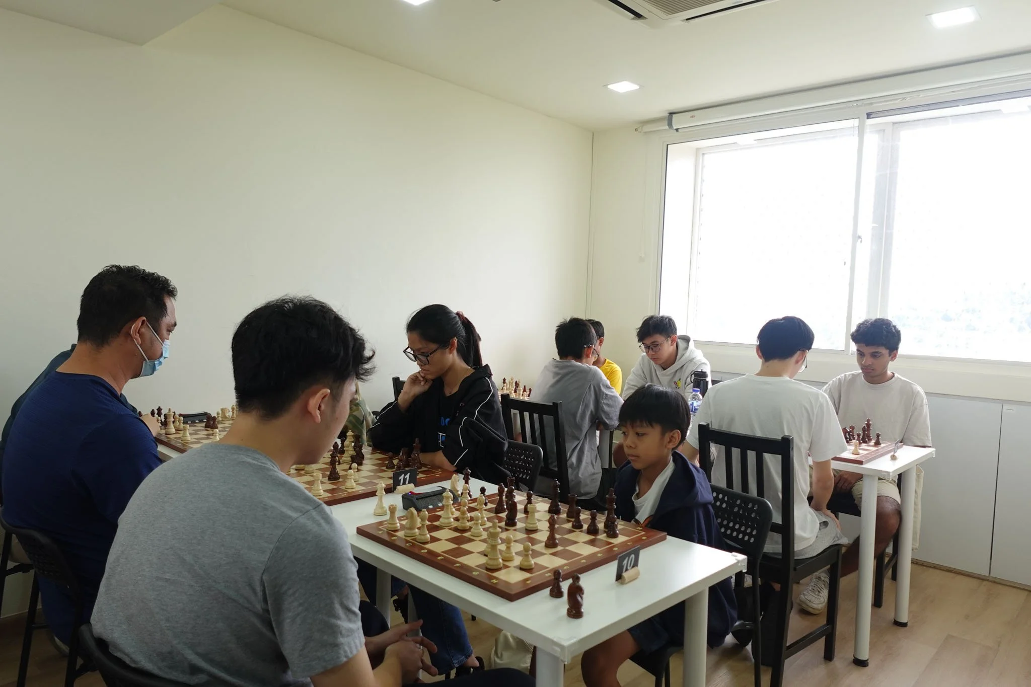 Picture an air-conditioned playing hall with snacks, plenty of space and solid wood chess sets!