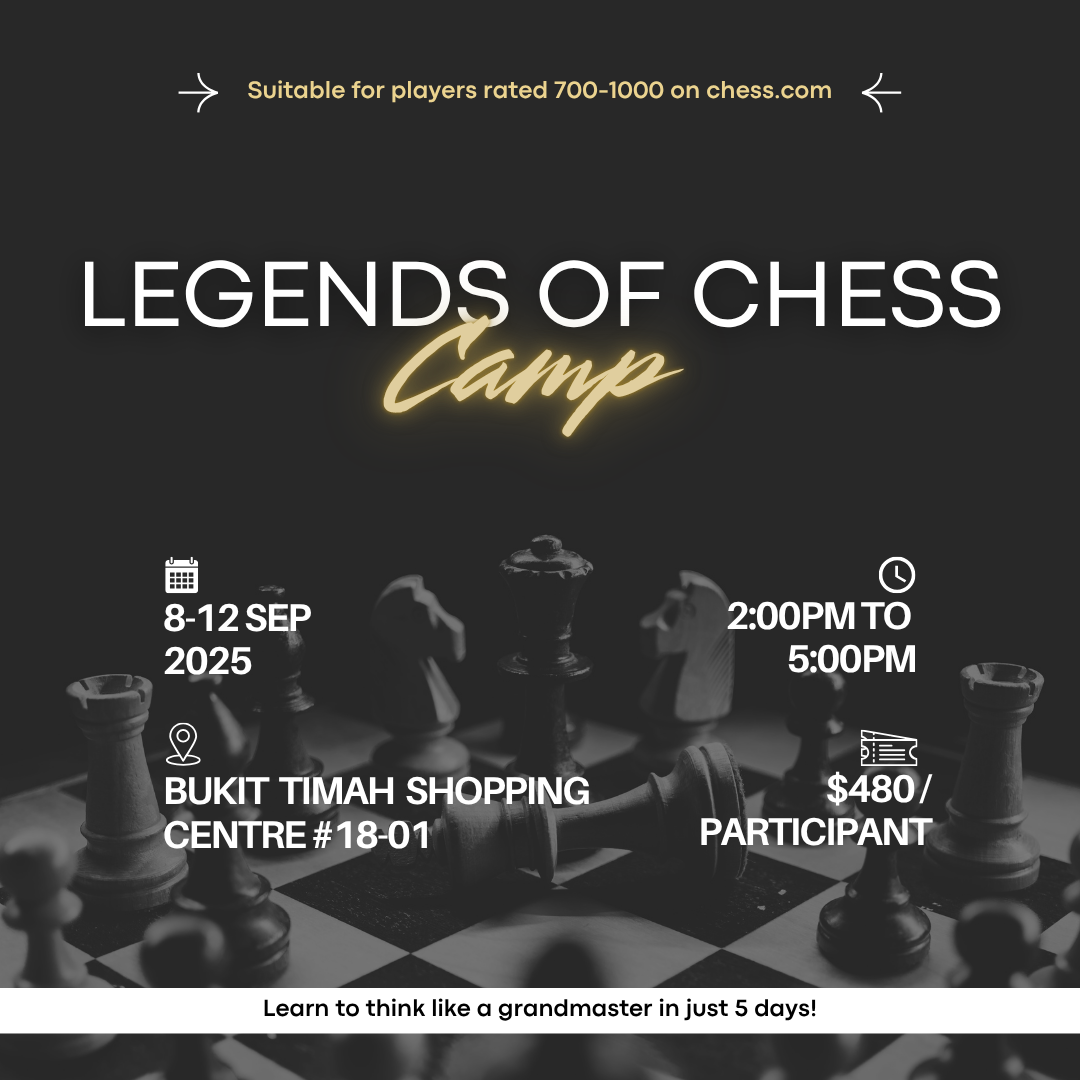 From Singapore’s very own Tin Jingyao creating international waves and upsets at every board, to the clash of legends, such as Alexendar Chernin, Judit Polgar, and Magnus Carlsen, kids will experience chess history’s most dramatic games—and the wild stories behind them! This camp uses real master games to teach openings, endgames, and tactics, tying every lesson to rivalries, comebacks, and moments that changed chess forever. Ideal for kids who love competition, drama, or seeing how legends think!